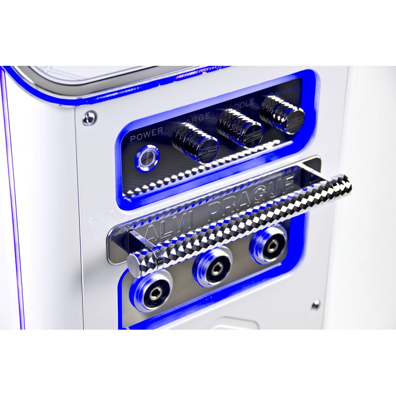 Il macchinario vacuum terapia di massaggio termico da onda d'urto Drumroll V-05 è il più recente sviluppo degli ingegneri del marchio di attrezzature cosmetologiche Alvi Prague (Repubblica Ceca). Perfezionando la tecnologia del macchinario vacuum terapia di massaggio termico da onda d'urto Drumroll V-03, gli esperti europei hanno creato un sistema completamente nuovo e avanzato. Le sue capacità consentono di combinare tre tipi di trattamento nel corso di una singola seduta. Con un solo macchinario vacuum terapia di massaggio termico da onda d'urto Drumroll V-05, le estetiste possono ora eseguire contemporaneamente il massaggio a vuoto ad impulsi, il massaggio termico e la cavitazione a ultrasuoni. Grazie a ciò, l'efficacia delle procedure aumenta di molte volte, consentendo di ottenere un risultato evidente nella correzione della silhouette e dell'ovale facciale nel corso di pochissime sedute e senza alcuno sforzo da parte del cliente.