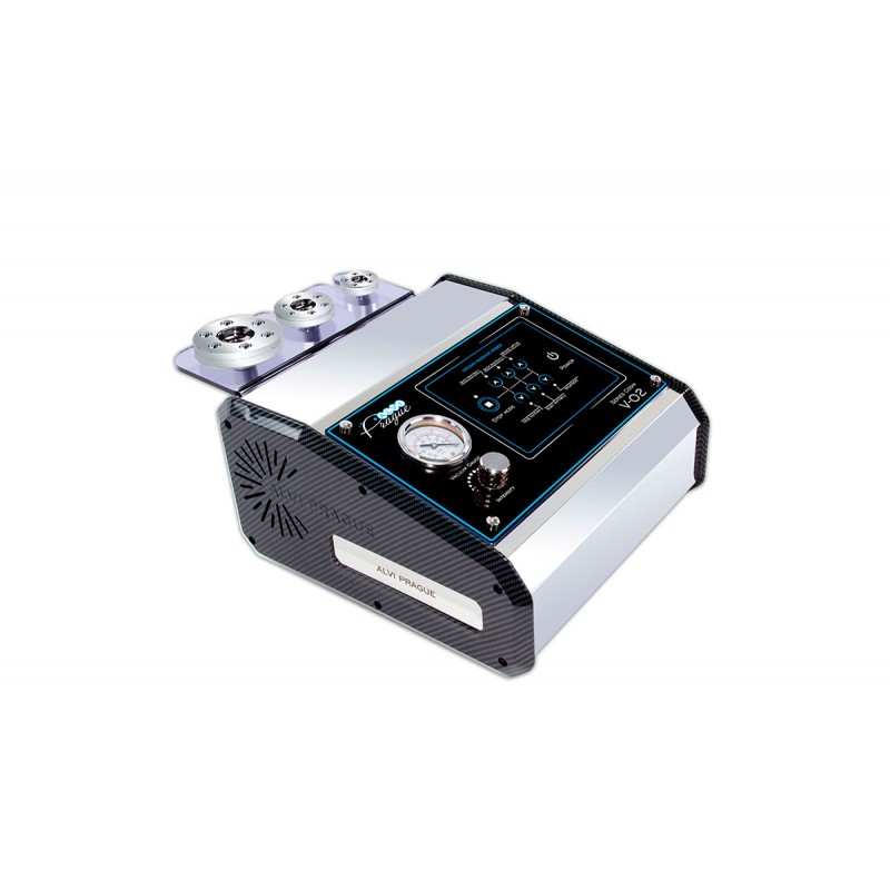 La possibilità di formare la pressione di vuoto necessaria è realizzata attraverso il compressore incorporato (0.6-0.7 bar) con un manometro, un regolatore di intensità di aspirazione regolare e le modalità di funzionamento preimpostate: "face"- viso, "body"- corpo, "breast"- seno.