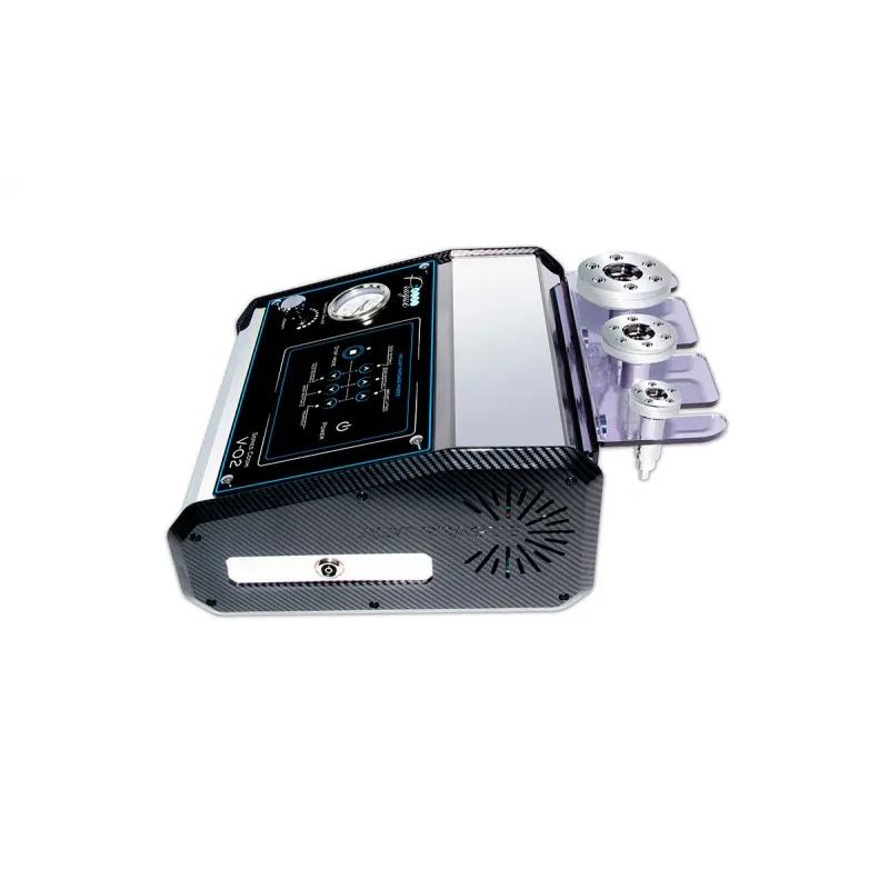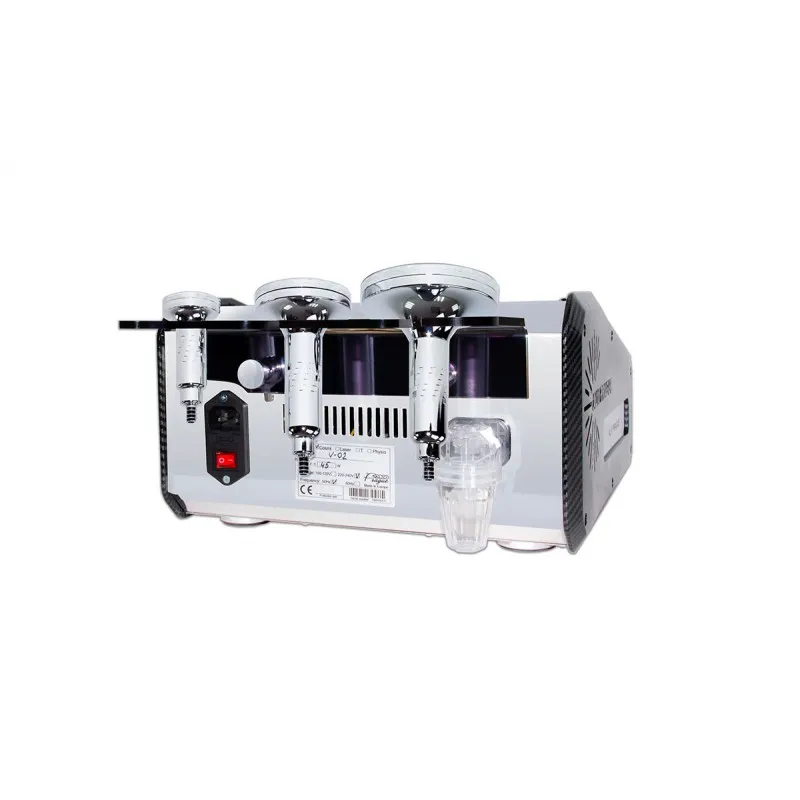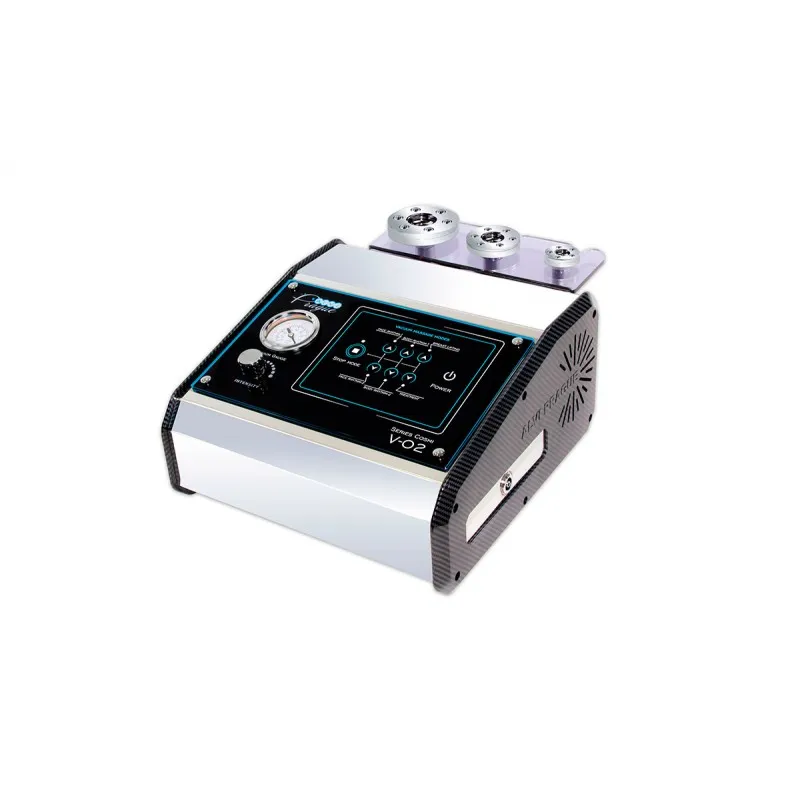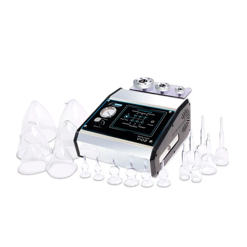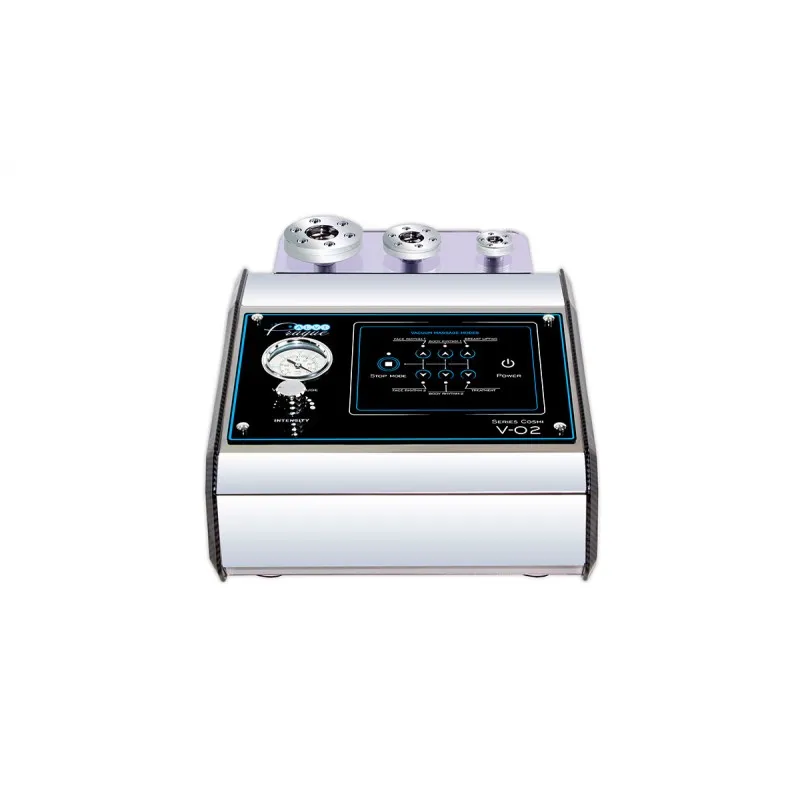 La possibilità di formare la pressione di vuoto necessaria è realizzata attraverso il compressore incorporato (0.6-0.7 bar) con un manometro, un regolatore di intensità di aspirazione regolare e le modalità di funzionamento preimpostate: "face"- viso, "body"- corpo, "breast"- seno.