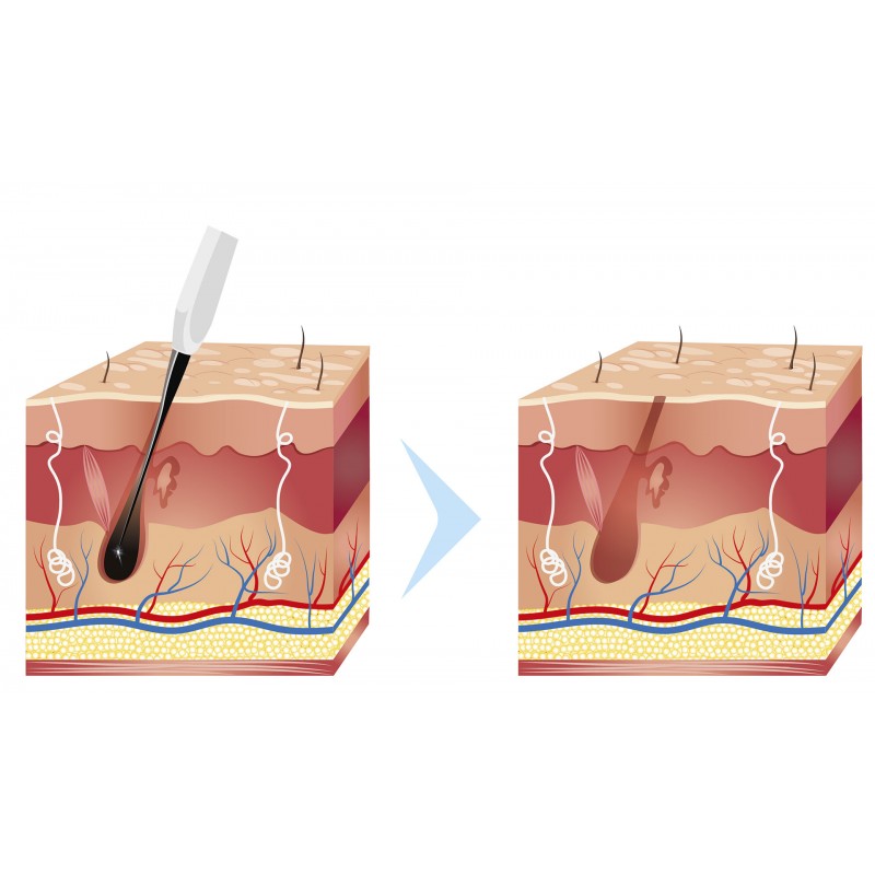 - Risultati a lungo termine: a differenza della depilazione convenzionale, l'elettrolisi fornisce risultati di depilazione a lungo termine, poiché la procedura porta alla distruzione del follicolo pilifero;