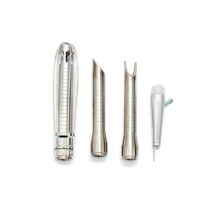 - Ampia dotazione di ugelli: scanner per il ringiovanimento della pelle con il laser, ugello per il ringiovanimento vaginale, per il ringiovanimento vulvare, ugello per il lavoro con la cervice, bisturi per due modalità di funzionamento (chirurgia generale e dermatologia)